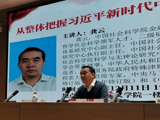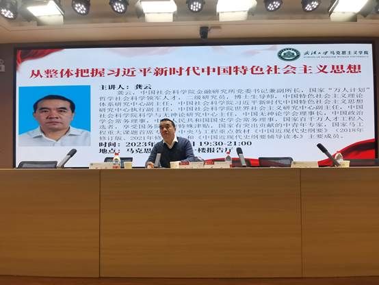 报告厅作“从整体把握习近平新时代中国特色社会主义思想”主题讲座。学院党委书记罗永宽教授、李学桃副教授等100余名师生参加了本次活动,讲座由周绍东教授主持。