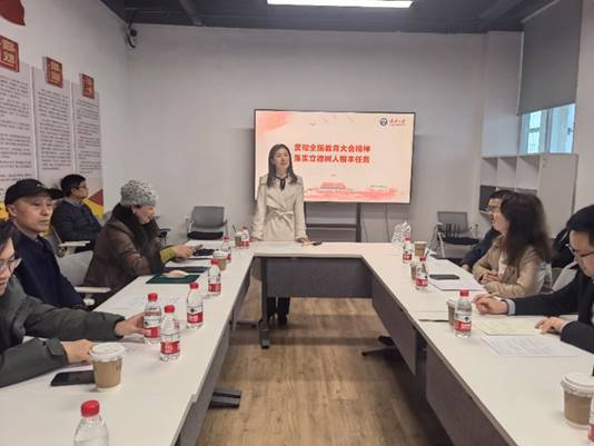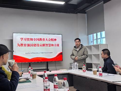 马克思主义中国化系支部宣传委员田贵华领学全国教育大会精神,他带领与会教师党员认真学习了习近平总书记在2024年9月10日在全国教育大会上发表的重要讲话。他指出,习近平总书记的重要讲话系统阐释了教育强国的科学内涵和基本路径,首次提出了教育强国的六大特质,教育强国建设需处理好五大关系,并部署了全面推进教育强国建设五个方面战略任务和重大举措。他指出,总书记的重要讲话高屋建瓴、思想深邃、内涵丰富,具有很强的政治性、思想性、指导性,是指导新时代新征程教育工作的纲领性文献,为建设教育强国指明了前进方向、提供了根本遵循。