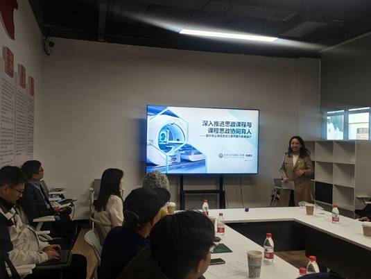 马克思主义中国化系支部副书记陈慧女就深入推进思政课程与课程思政协同育人进行了深入交流,提出课程思政应遵循教育教学规律,深入梳理专业课教学内容,结合不同课程特点、思维方法和价值理念,深入挖掘课程思政元素,有机融入课程教学目标、内容、方法和评价等环节,达到润物无声的育人效果,并以临床病理生理与治疗学课程为例,讲述应如何设计课程思政创新教案。此外,她还表示课程思政应开放式开展,与思政课程建设同向同行,形成协同育人效应。
