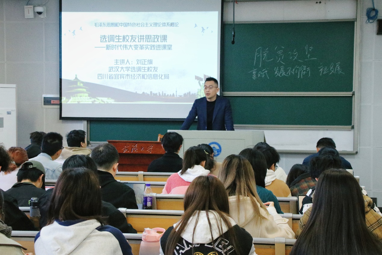 本次活动主题为“新时代伟大变革实践进课堂——选调生讲理论联系实际”,邀请了12位优秀选调生校友,在12个教学班开展授课。选调生校友们结合自己的工作实际,向学弟学妹们展示了新时代伟大变革的事理学理道理,回答了同学们关于自身成长与新时代发展如何实现同频共振的系列问题,推动思政课教学在理论与实践的融合上走深走实走细,受到同学们的热烈欢迎。