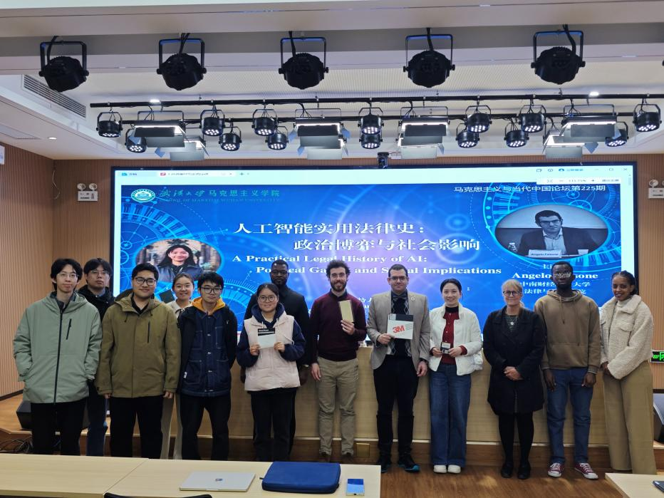 “马克思主义与当代中国论坛”第二百二十五讲“人工智能实用法律史:政治博弈与社会影响”在学院报告厅成功举办。中南财经政法大学法律与经济学院讲师Angelo Falsone应邀作专题讲座,讲座由欧美色情