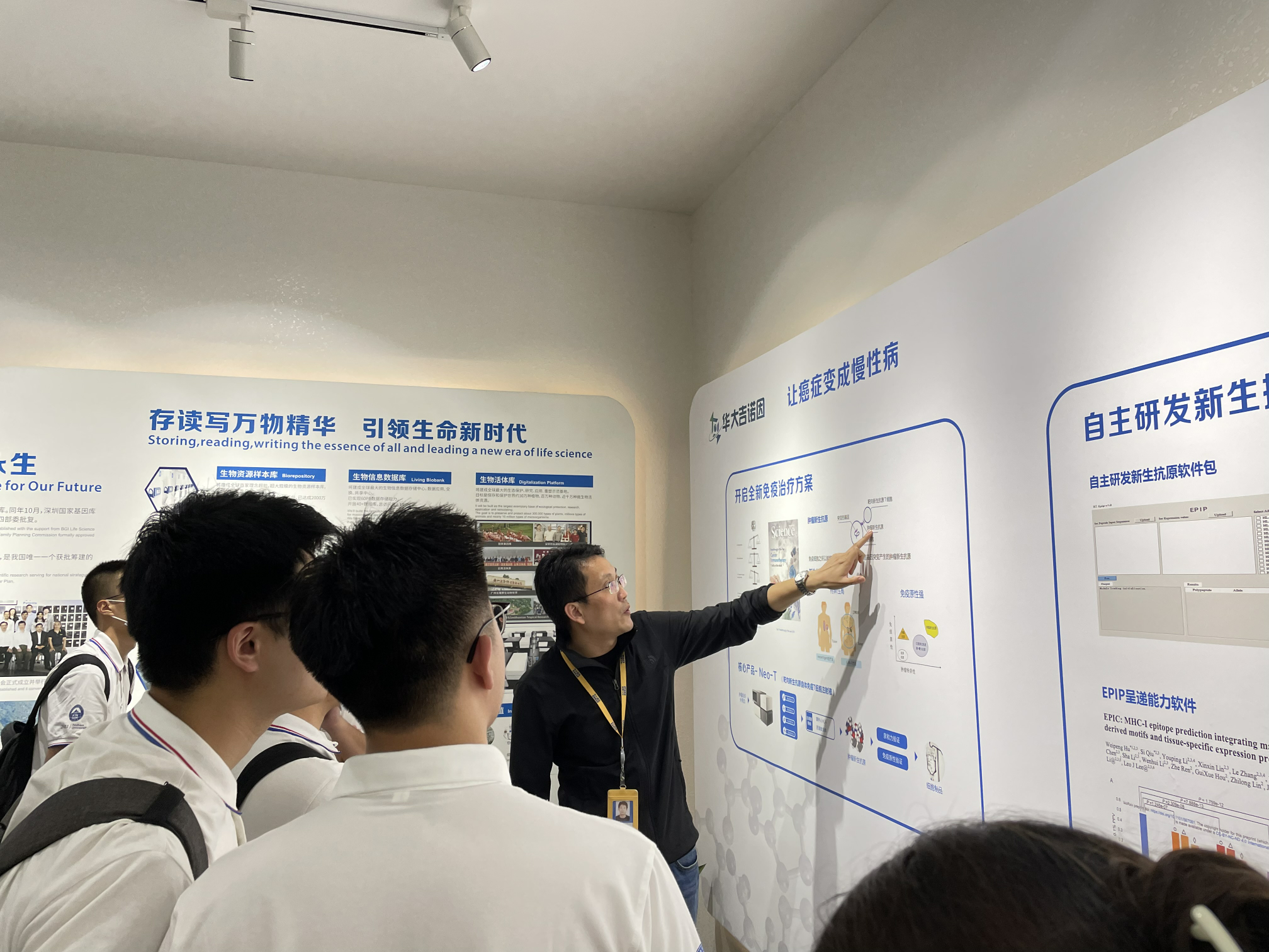 随后,实践教学队伍前往第二站——国家基因库。国家基因库是服务于国家战略的国家级公益性创新科研及产业基础设施建设项目,是引领我国生命科学和生物经济发展的战略性科技力量。在这里,同学们参观了生物样本库和生物信息数据库,进行了基因研究的相关科普学习。