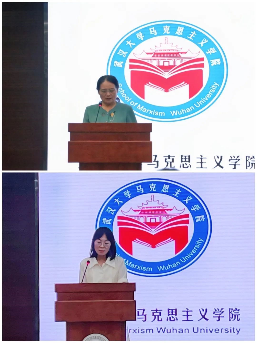 在学生代表发言环节,2022级本科新生代表侯沛希同学谈到了结缘武大、选择武大的原因,表达了对大学四年生活的美好畅想,号召同学们以参与者的姿态找到属于自己的归属感。2022级硕士新生代表孙永鑫同学分享了自己学习马克思主义理论的契机以及在追逐马克思主义的道路中的相关经历,倡导同学们要有坚如磐石的政治定力、源源不竭的学习动力、敢为人先的实践魄力、率先垂范的人格魅力,在学思践悟中争做新时代武大青年!2022级博士新生代表王馨玥同学讲到,在未来的学习生活中,应珍惜时光,格物致知,坚定理想,不负时代,热爱生活,乐观向上,以青春之我,回应当下蓬勃美好的时代。高年级学生代表,思想政治教育专业博士研究生付玉璋同学与学弟学妹们分享四点感悟:一是学在武大,要尊师重道,从游于师,治学严谨,学风端正,博观约取,厚积薄发。二是干在武大,不仅要读有字之书,更要读无字之书,在实践中不断磨砺与成长。三是乐在武大,保持乐观精神,以辩证的态度看待荆棘,在挫折中看到希望,在黑暗中看到光明,在危机中看到转机。四是爱在武大,珍惜来自五湖四海的缘分,收获宝贵的师生情和同窗情。