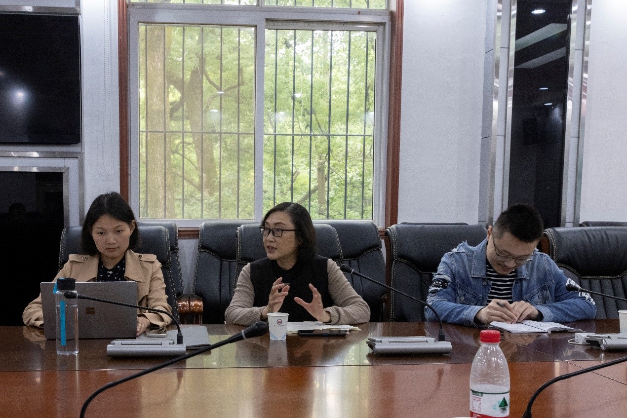 杨军首先简要介绍了她所主持的湖北名师工作室的运行情况和工作任务。她表示,工作室注重教学内容研讨、教学活动组织、教学方法交流,愿意组织集体备课、教学调研、教学研讨、教学展示等多种形式的教学活动,帮助学院青年教师实现教学能力成长,产生一系列教学研究成果,并通过这一平台充分展示青年教师教学风采。