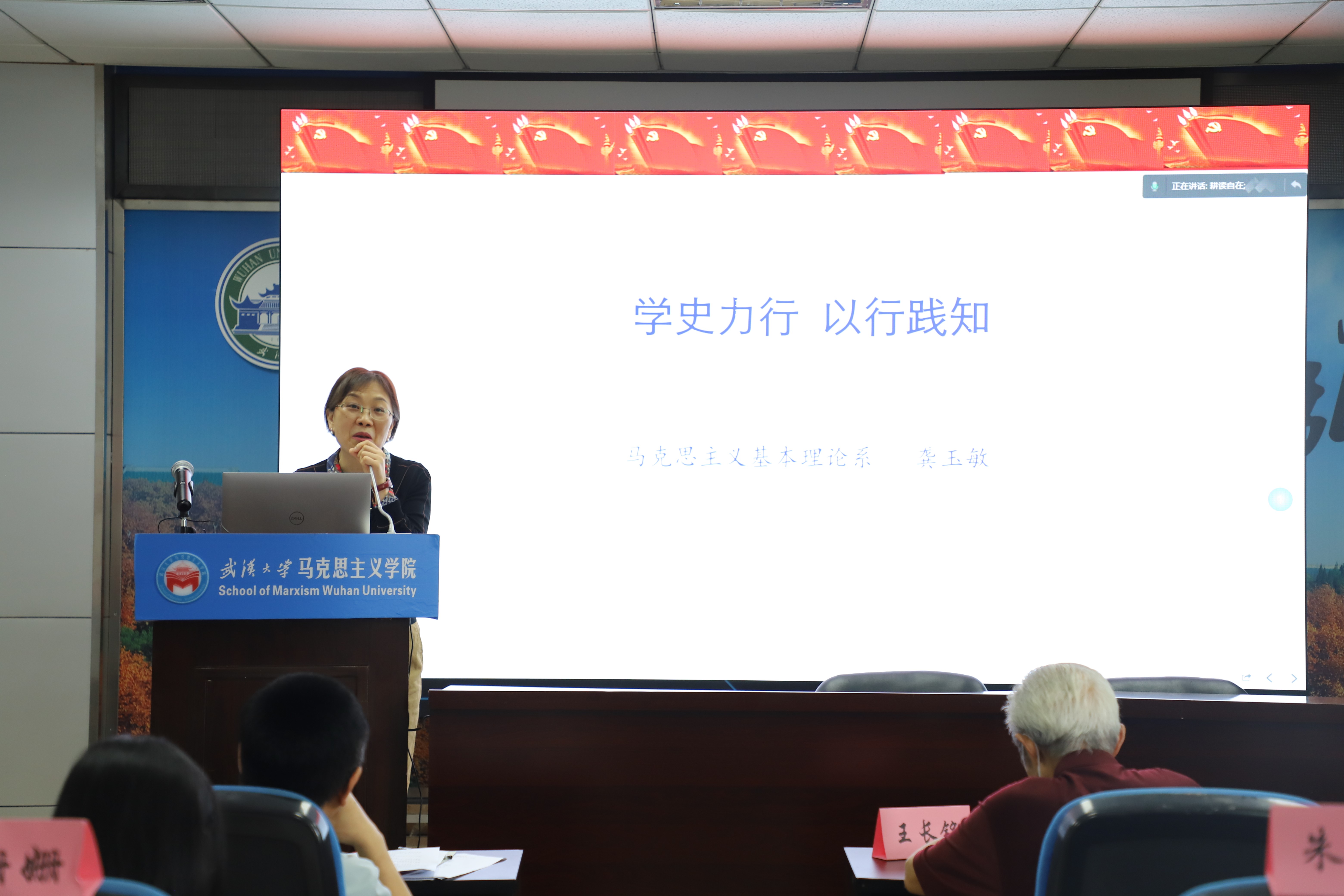 的校党委书记韩进全程听课。本次微党课活动由院党委书记罗永宽教授主持。