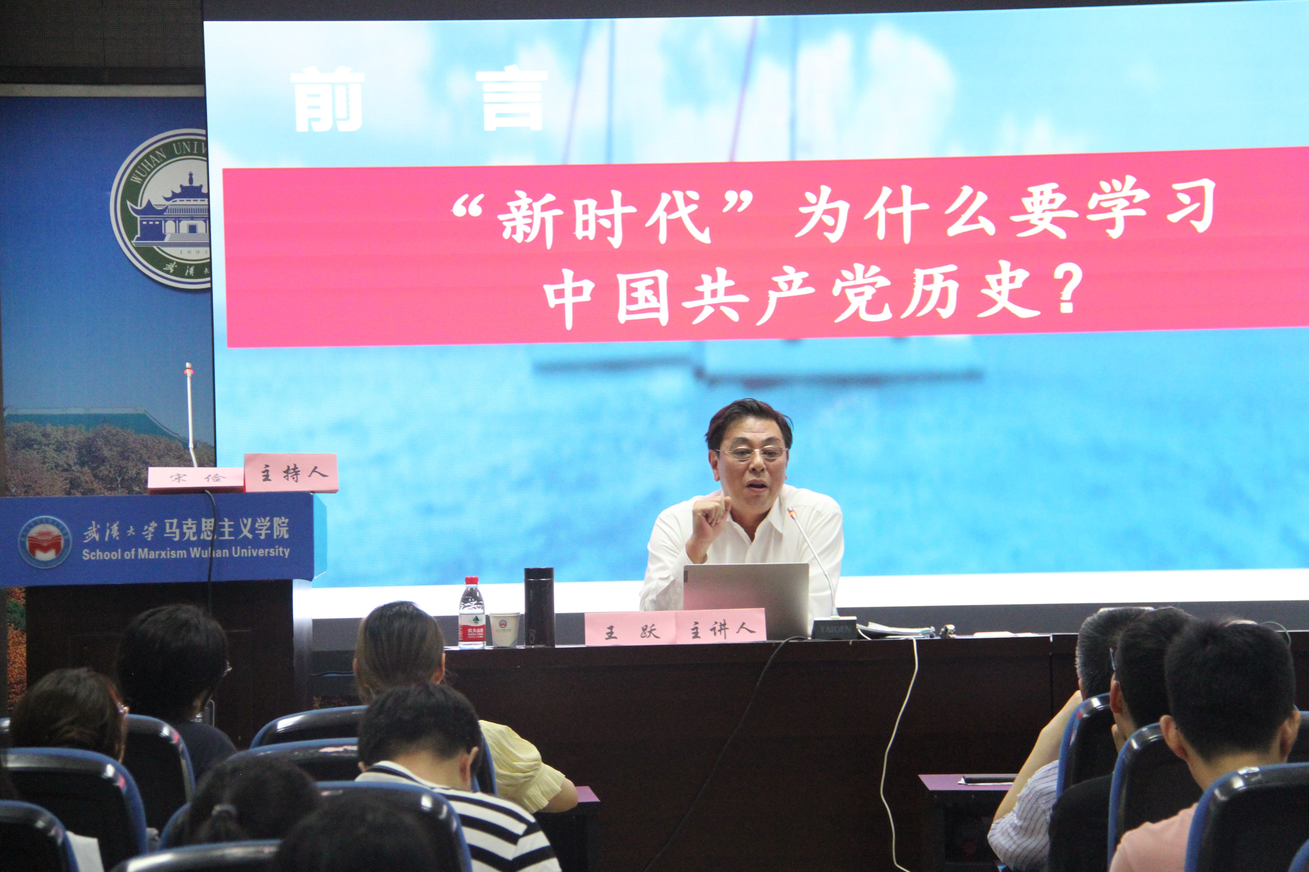 王跃教授首先提出了新时代为什么要学习中国共产党历史这一问题。他引用习近平总书记在党史学习教育动员大会上的讲话回答到:“学史明理、学史增信、学史崇德、学史力行。”他特别解释了“学史明理”的内涵,指出学史明理就是通过党史学习教育重新进行一次唯物史观教育,增强党员领导干部的理论思维和历史思维,增强对党的执政规律、社会主义建设规律、人类社会发展规律的认识,从而增强对习近平新时代中国特色社会主义思想科学性、真理性的理解,达到提高全党思想理论水平的目的。