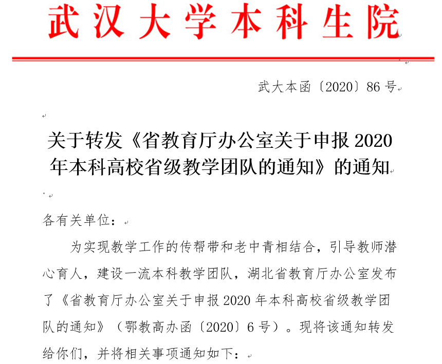 关于转发《省教育厅办公室关于申报2020年本科高校省级教学团队的通知》的通知