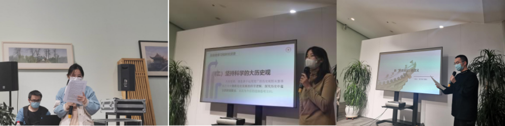 在研习小组代表发言结束后,丁俊萍教授、罗永宽教授、宋俭教授分别对发言人的观点进行了点评与指导。三位教授肯定了成员们的充分准备,就三个议题分别指出,要充分把握史料,正确认识“历史决议”的政治性质,从中发现对党领导中国人民和中华民族从站起来到富起来再到强起来的成功奥秘;在探讨党史研究方法时要将经典文本与历史实境结合,坚持唯物史观的指导,同时要以“决议”为依据,坚持正确党史观;要以“两个确立”为中心, 理解即将发布的新“决议”的政治意义和历史意义。三位教授还对理论研习的具体方式,如何围绕主题有效进行议题讨论,在问答互动中加深理解、共同进步等方面给予了指导。