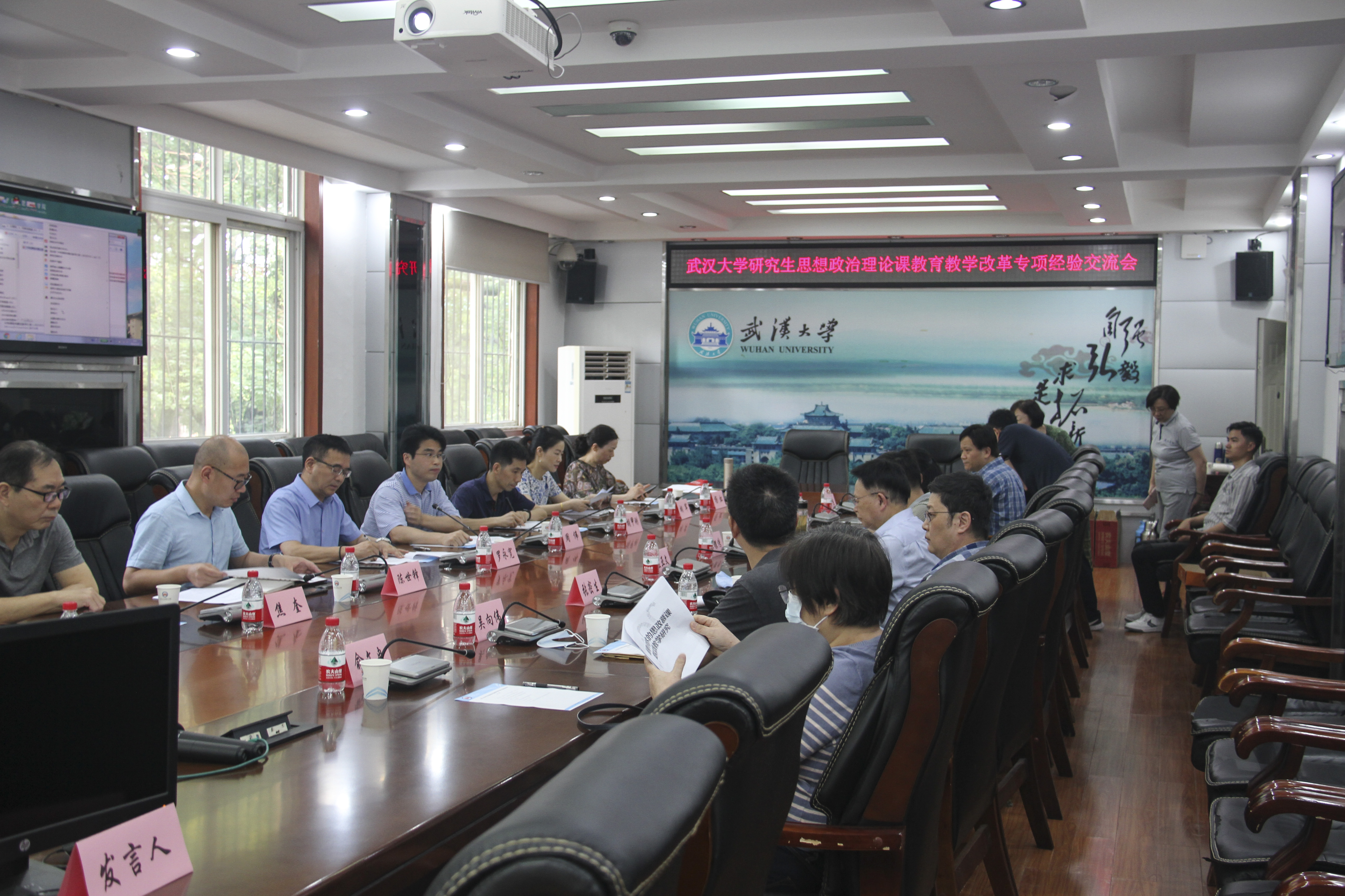 武汉大学研究生思想政治理论课教育教学改革专项经验交流会,于2021年7月15日上午在武汉大学马克思主义学院M218会议室成功举行。研究生院副院长周伟教授,培养工作处副处长胡甲刚老师、胡军老师,马克思主义学院党委书记罗永宽教授,中国马克思主义与当代课程中心主任袁银传教授,马克思主义与社会科学方法论课程中心主任左亚文教授,中国特色社会主义理论与实践研究课程中心主任李楠教授,自然辩证法概论课程中心主任张密生副教授,中国特色社会主义理论与实践研究课程中心李勤教授、吴向伟副教授、万军杰副教授、俞文冉副教授、焦奎副教授、杨虹副教授、陈慧女副教授、李向勇副教授等参加,会议由马克思主义学院副院长陈世锋主持。