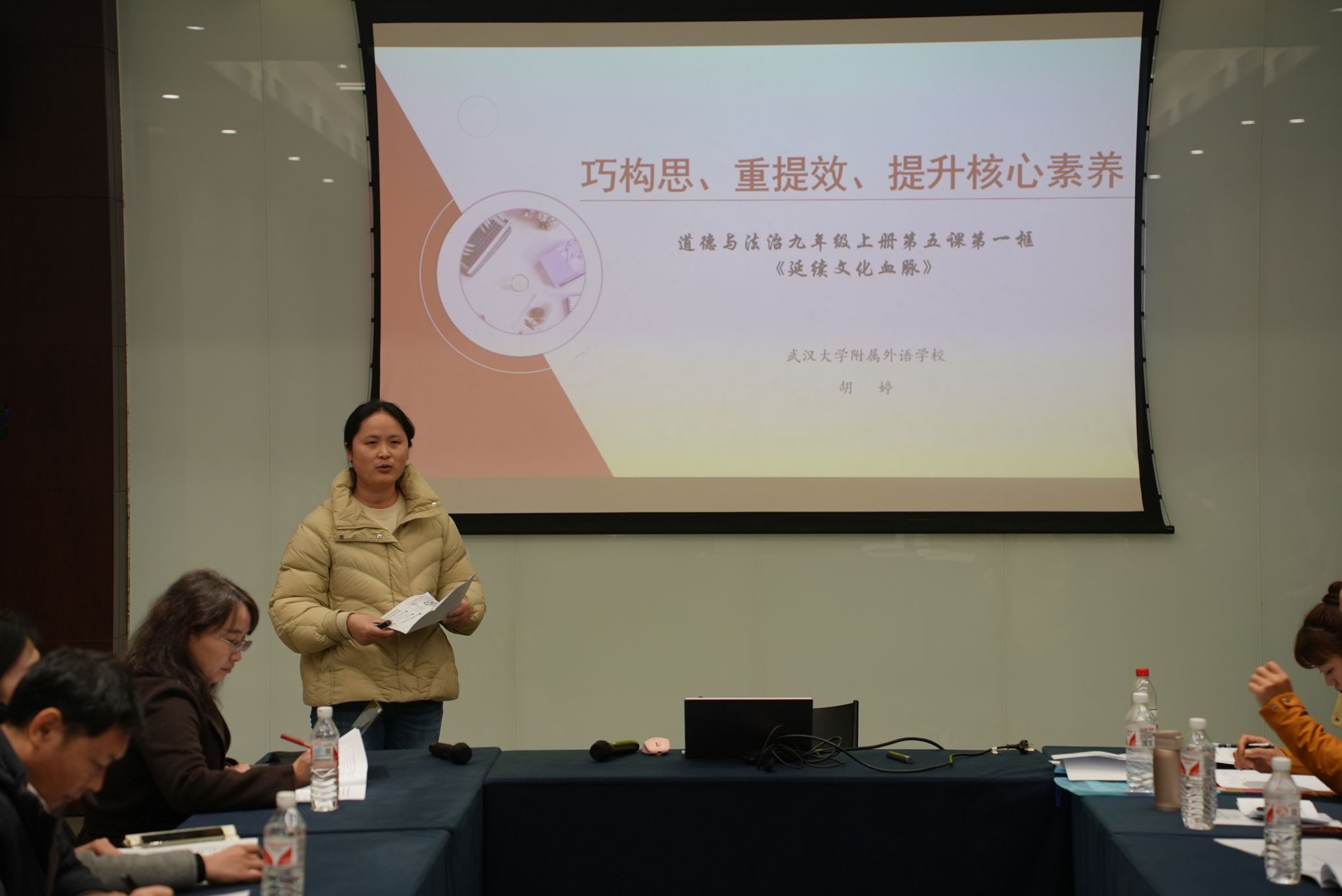 展示结束后,武昌区教研中心教研员黄志平老师对五位教师的精彩展示进行了全面而深入的点评。他特别指出,每个学段都精准把握了本学段学情,抓住了学生的已知点、困惑点和发展点,这是做好大中小思政一体化工作的前提和基础。小学的两堂道法课,一堂课围绕古代科技,另一堂课聚焦文化多样性,都充分展现了小学教学的特色。初中阶段的关键词是“体验”,课程围绕文化内涵和文化自信展开,老师们能紧密结合时政,用课标中的典型案例进行小结,有助于坚定学生的文化自信,增强他们的爱国情感和责任感。高中阶段的课程同样注重文化自信,但教学方法更多采用议题式,注重探究和辨析。而大学阶段的教学则更注重学理性,理论体系很强,辨析探究环节丰富。老师们的讲课充分考虑了本学段学生的特点,体现了循序渐进、螺旋上升的教学过程。同时,他还针对各学段的教学提出了具体建议,比如小学学段的两位老师可以围绕学科核心素养的五个方面来制定素养目标,初中学段的老师则可以结合时政热点培养学生的社会责任感和使命感,高中和大学学段的老师们建议继续深化教学内容,注重培养学生的批判性思维和创新能力。