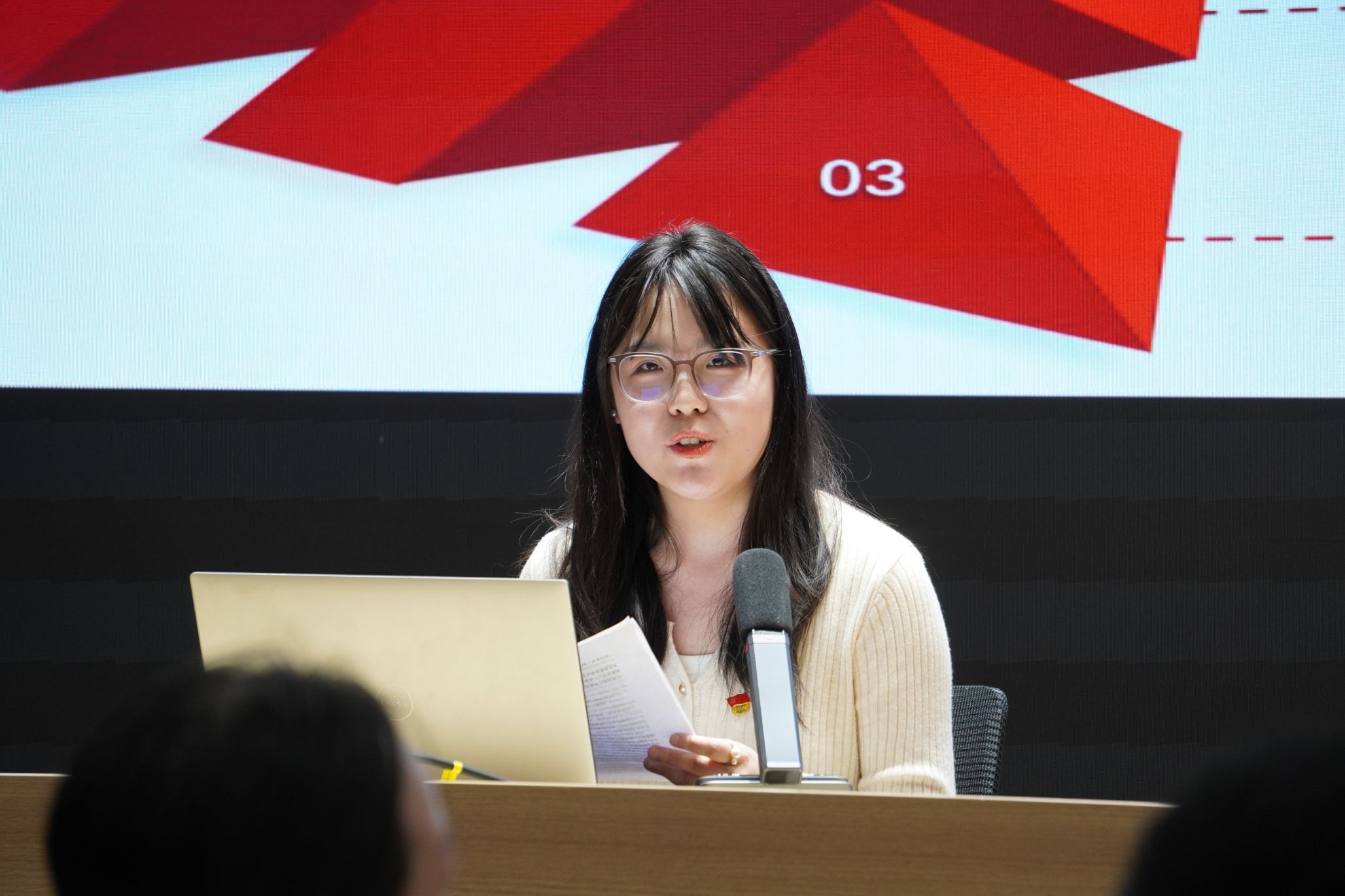 “青春当属志愿红”,2024级硕士第一党支部书记赵颖闻随后汇报了学生党支部志愿服务实践的相关情况。赵颖闻从支部概况与组织架构出发,介绍了支部成员在高校、中小学、社区、自然环境中开展的各类丰富多彩的志愿活动。学生党员、积极分子在组织活动、沟通协调、教学实践等多方面得到了锻炼,也收获了满满的感动,赵颖闻表示学生党支部将以雷锋精神为指引,通过志愿服务不断传承发扬这份精神,在成长路上奋勇向前,为社会贡献更多力量。