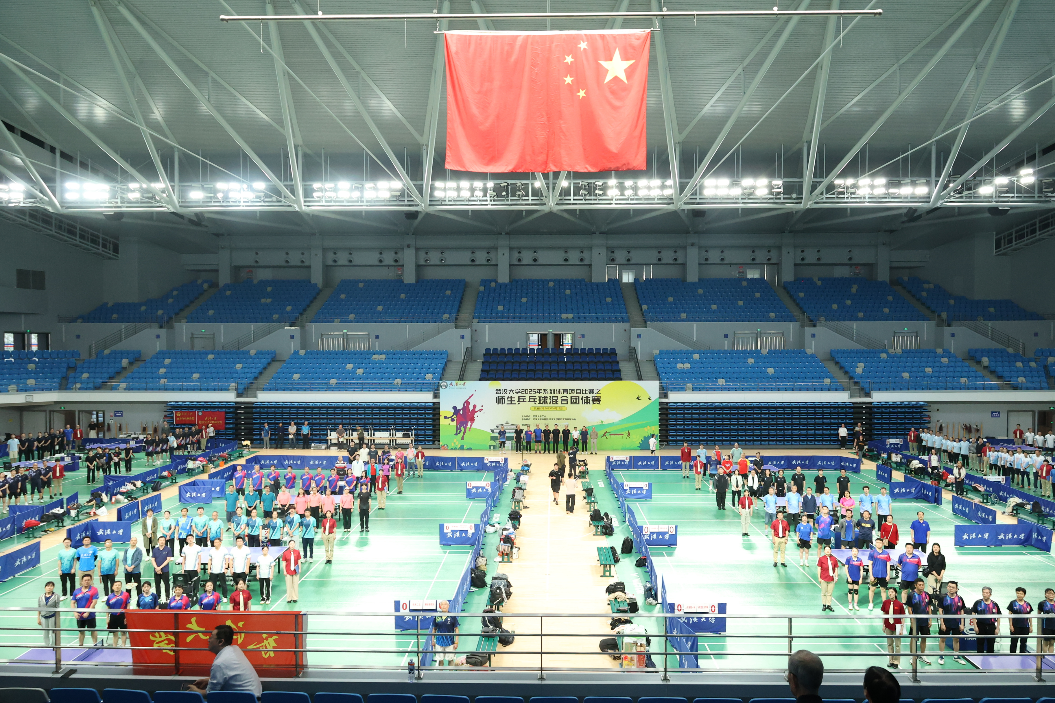 武汉大学2025年系列体育项目比赛之师生乒乓球混合团体赛,于2025年4月19日在卓尔体育馆隆重举行。经过全天的激烈角逐,学院教职工乒乓球代表队从51支代表队中脱颖而出,荣获甲级组并列第9名的优异成绩。