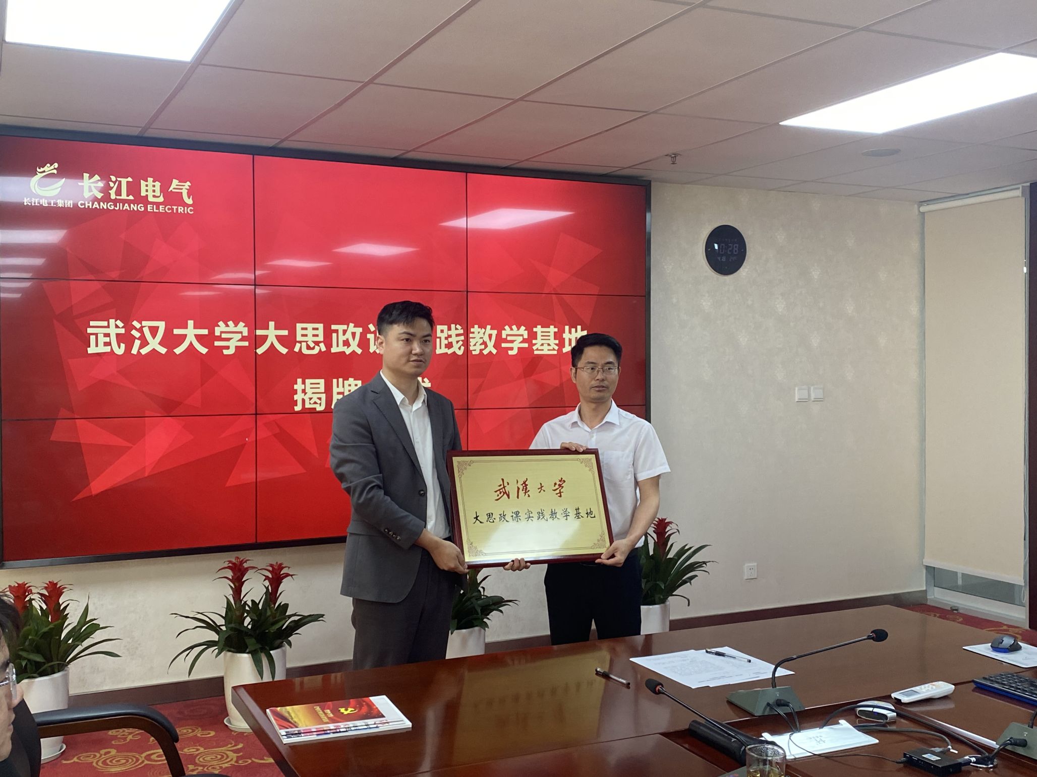 随后,一行来到湖北长江电气有限公司,参观了企业建设成果展与一线智能生产车间。长江电气负责人黄飞宇总裁介绍了企业在产品研发、党的建设、社会影响等方面的发展成就,希望能够利用企业在智能电网、智慧能源等领域的发展优势,为高校师生提供专业精深、视野广阔的“大思政课”教学实践平台。