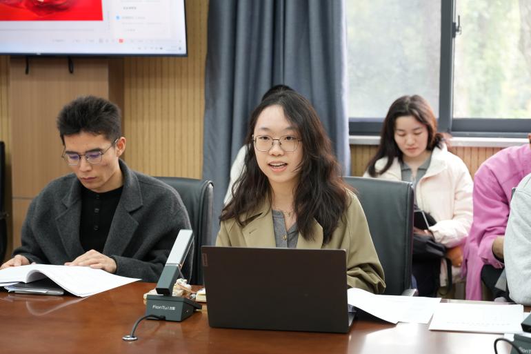 随后,学生党总支陈佳妮同学指出了入党材料审核工作中,工作人员一方面要逐一核查相关材料的信息是否完整规范,杜绝涂改未按手印等疏漏;另一方面要精准把控时间逻辑,全面保障入党材料的真实性、规范性与程序时间线的严谨性。