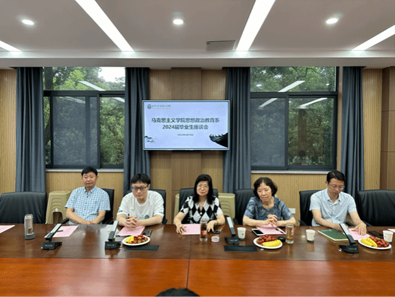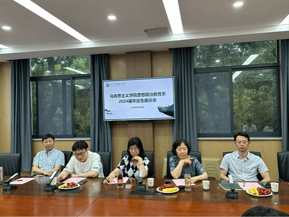202会议室举办了2024届毕业生座谈会。此次座谈会由思政系主任倪素香主持,学院副院长简繁、思政系教师代表以及本、硕、博毕业生代表共同参与。