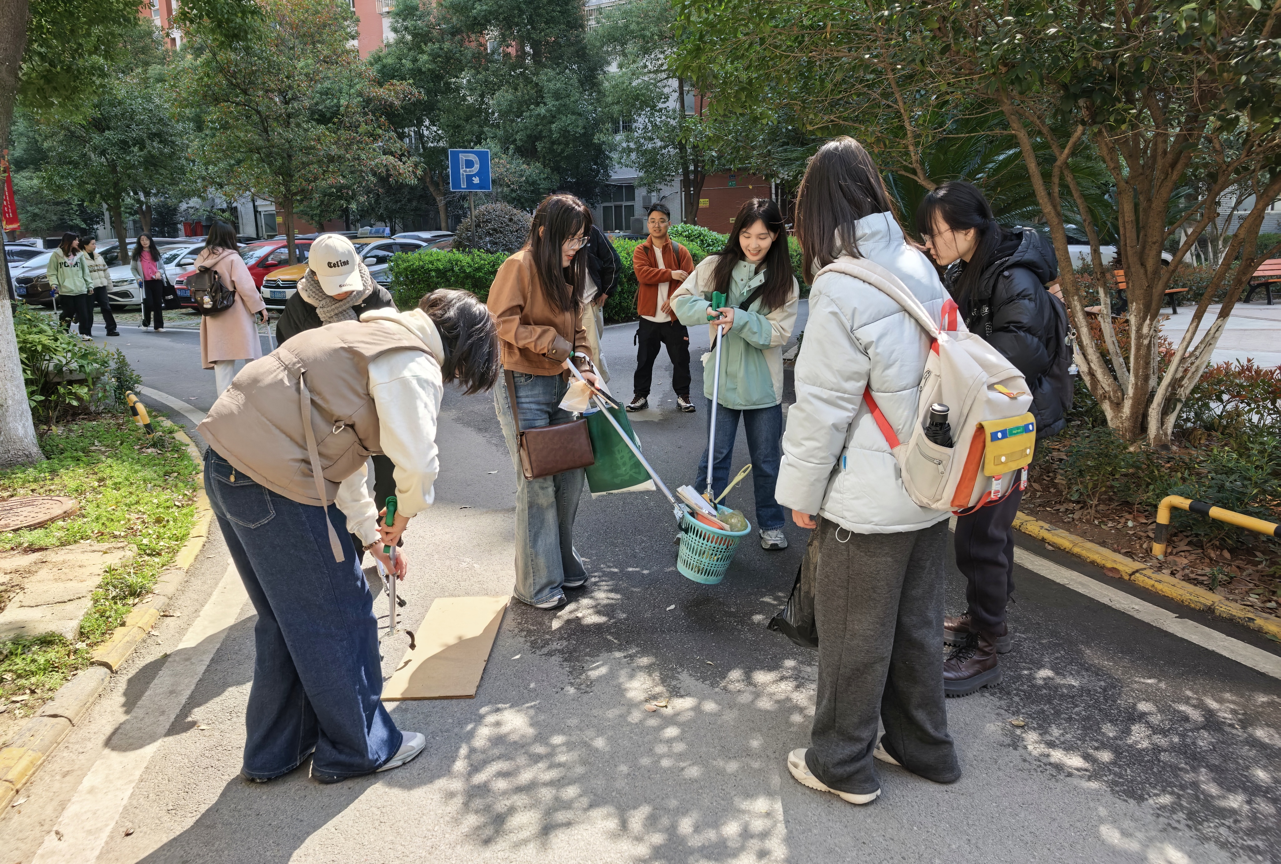 学院2024级硕士第一党支部、第二党支部、第三党支部、第四党支部、马克思主义研究生会联学联建,积极响应号召,创新服务形式,前往东湖新城社区开展了“战疫史中悟党情,洁园行里践使命”志愿服务活动。东湖新城社区党建专员带领支部成员参观了社区战疫文化室。随后,支部党员开展社区清洁活动。在志愿服务过程中,支部成员以四人为一组,两三人持垃圾夹,一人拎塑料袋,热情高涨地投入到清洁活动中,仔细搜寻树下、草丛、路边、停车场里的纸屑、烟头、食品包装袋等垃圾,齐心协力清理区域环境,以实际行动践行雷锋精神,为维护社区清洁做出自己的贡献。