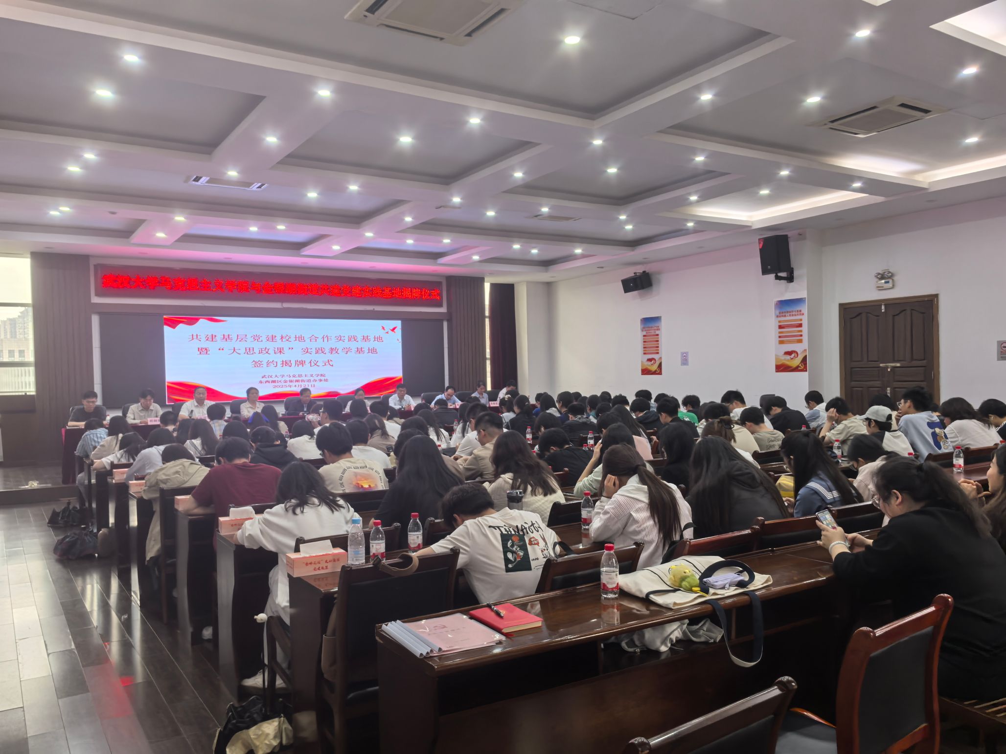 实践教学行程最后,师生们来到金银湖街道办事处701会议室,参加“基层党建校地合作实践基地”揭牌仪式。来自区委组织部、区委直属机关工委等单位的领导参与本次授牌仪式。仪式由街道党工委副书记赵国辉主持,欧美色情