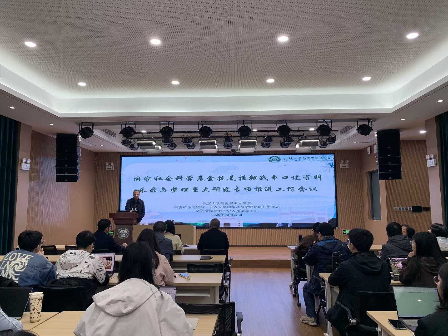 2025年10月27日下午,国家社会科学基金抗美援朝战争口述资料采录与整理重大研究专项推进工作会议在学院召开。学院院长罗永宽教授、课题负责人宋俭教授、课题组成员和学生志愿者等共50余人出席会议。课题组成员、党史党建系支部书记万军杰老师主持会议。