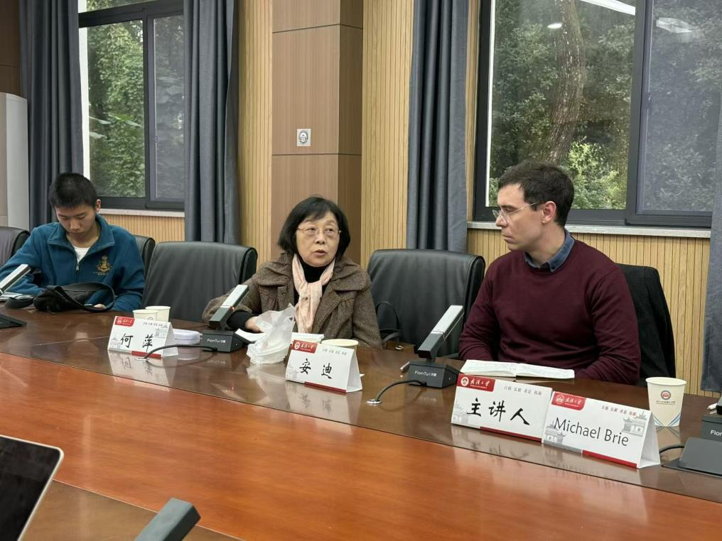 在互动环节,布里教授与在座的老师和同学们进行了深入交流。互动环节由朱霞女士担任翻译。安迪老师提出有关“社会主义转型中的政治主体”“西方霸权的本质”“改革与革命的关系”等问题。布里教授随即展开回应,探讨了欧洲亟需重建社会主义认同、工人阶级对左翼政党的支持度下滑,以及美国“美国优先”政策与中国互利共赢合作模式的差异,并深入剖析了社会主义体系下工人所有制的复杂性,以及法律框架在化解社会矛盾中的关键作用。