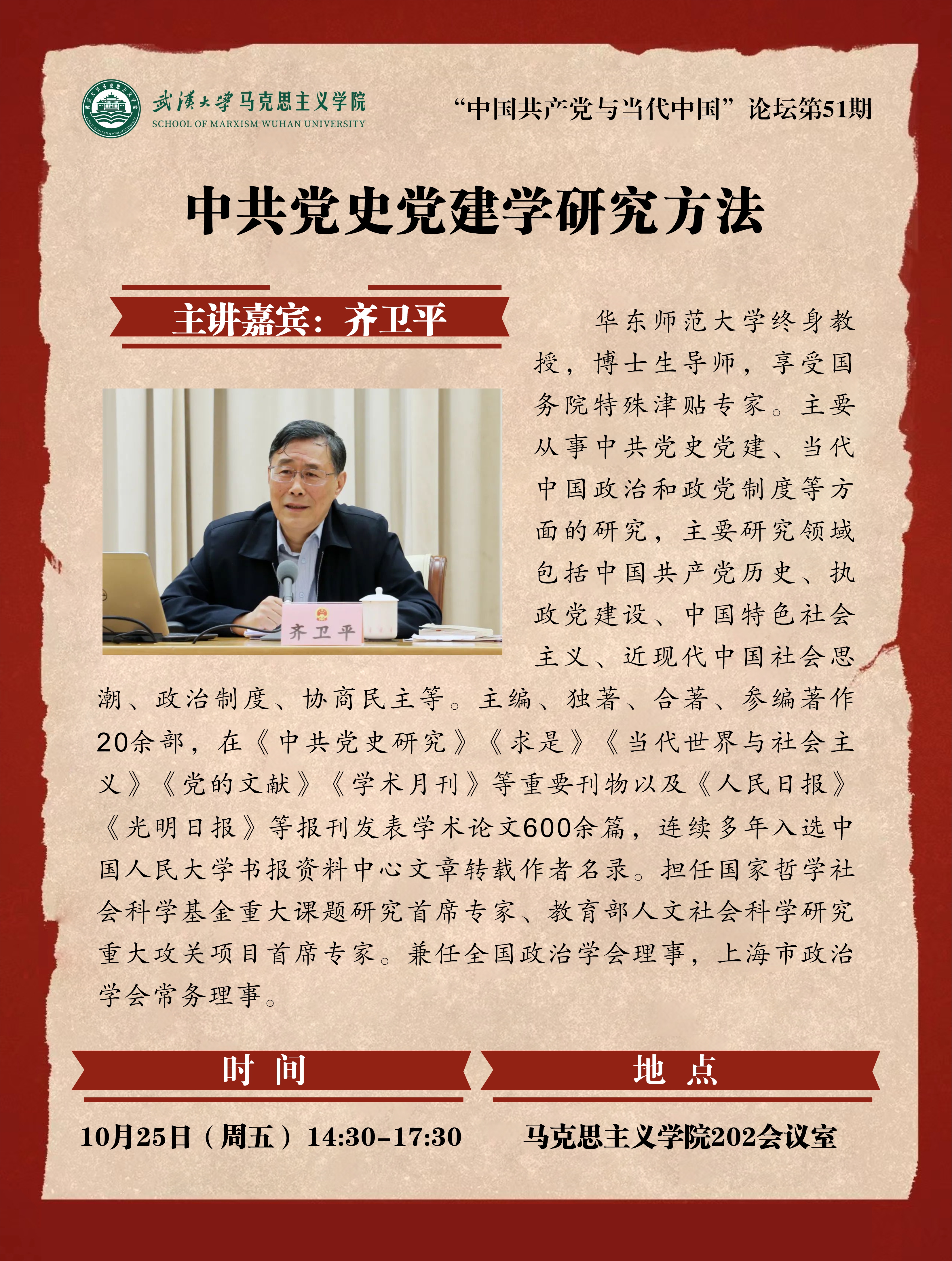 下一条:【中国共产党与当代中国论坛第50期】宋镜明:武汉大学中共党史党建学科建设发展概要