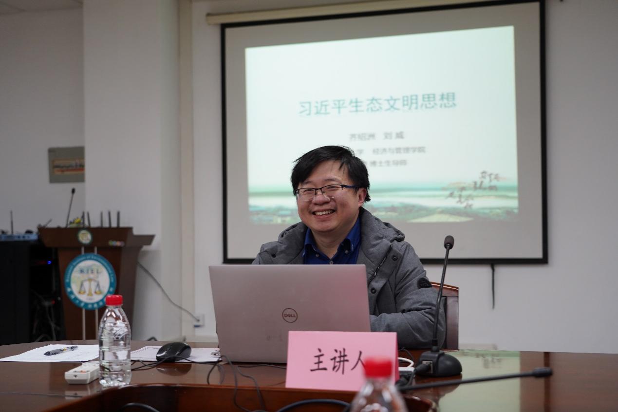 刘威阐述了专题团队的教学目标、教学内容、教学方法和参考文献,教学内容聚焦习近平生态文明思想的背景和意义、核心要点、“十四五”规划对生态文明建设的新要求,介绍了如何讲好双碳战略目标等教学案例。