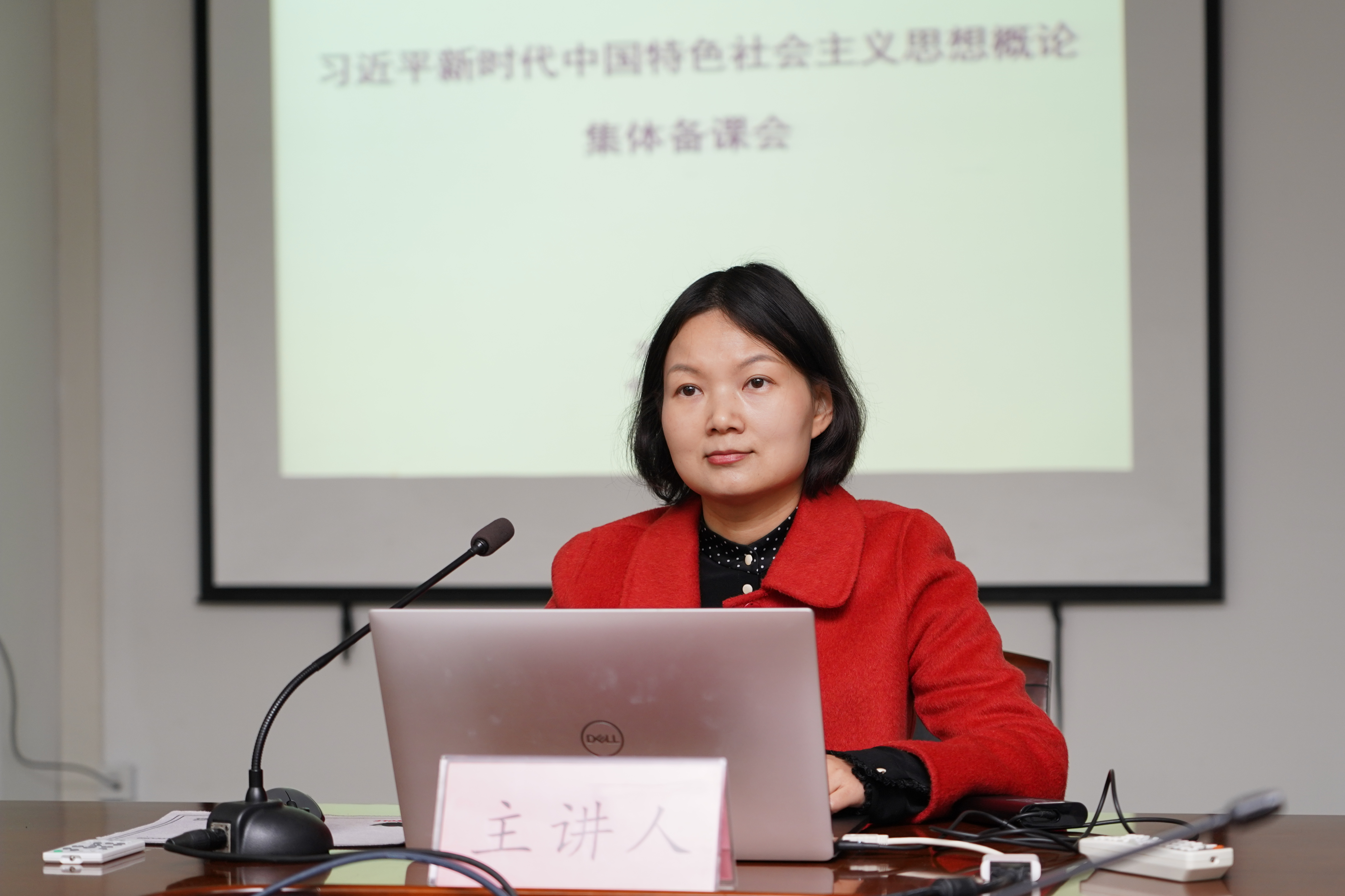 任艳代表专题组汇报了学情分析、教学理念、教学目标、教学内容四个方面,对什么是人民和以人民为中心、为什么要坚持以人民为中心、怎样坚持以人民为中心等三个主要教学内容进行了阐述。