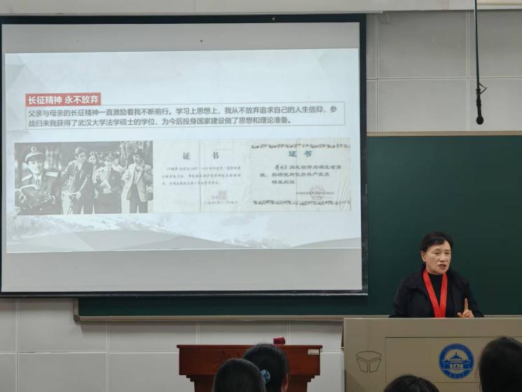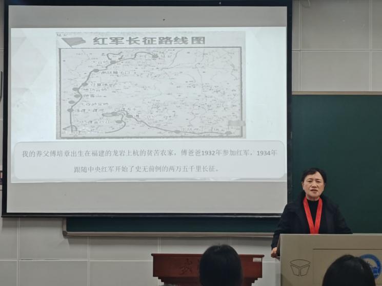 傅晓方老师从“养父傅培章英勇悲壮的长征与西征”、“生父段国杰浴血奋战的抗日远征”、“傅晓方难忘和平年代的战火芳华”三个篇章展开,用一个个真实感人的故事,引领同学们穿越时空,重温那段艰苦卓绝的岁月,见证一段跨越时空的信仰传承。